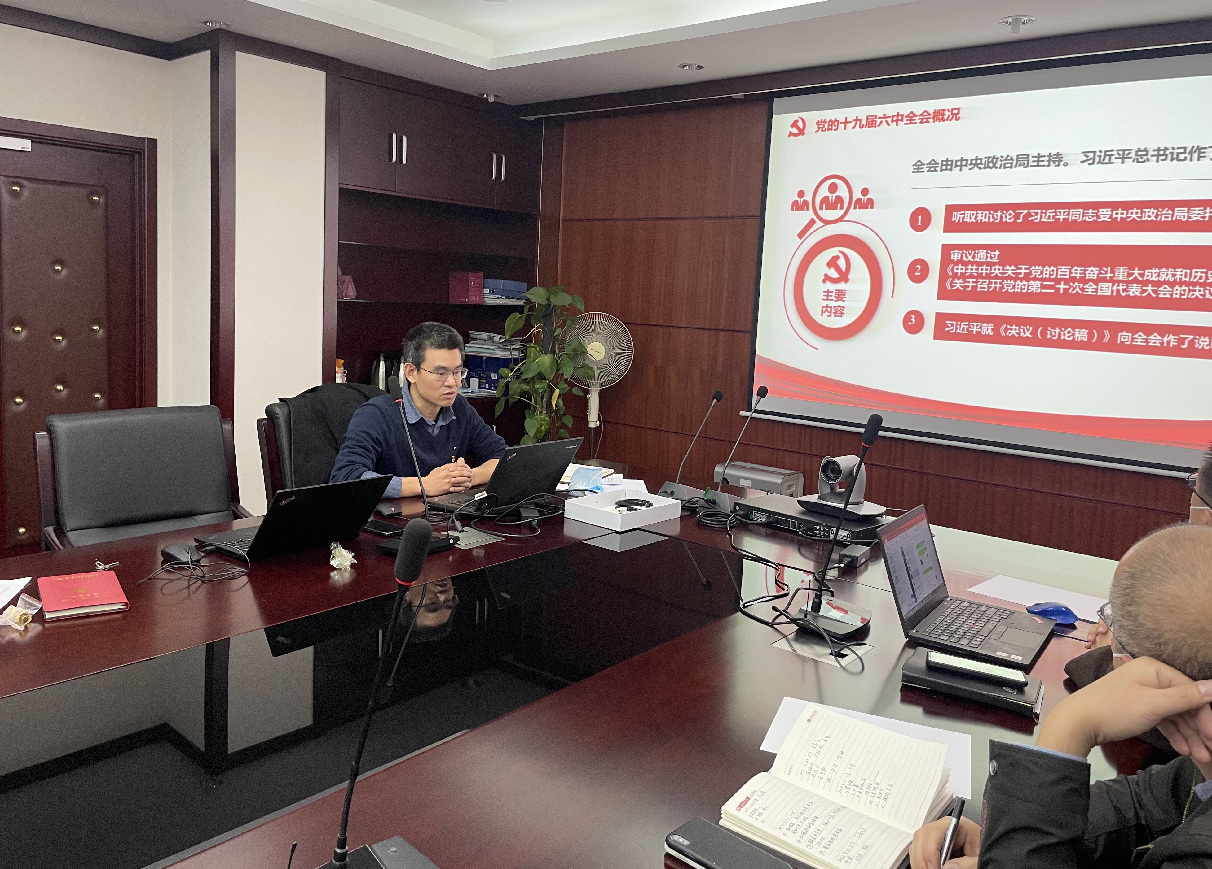 党支部书记朱小勇带领全体党员学习了党的十九届六中全会精神,他首先介绍了党的十九届六中全会概况,回顾了十八大以来历届中央全会的主题,随后详细传达了党的十九届六中全会公报内容。全会通过的《中共中央关于党的百年奋斗重大成就和历史经验的决议》,对于深刻总结党的百年奋斗的历史意义、伟大成就和宝贵经验,继续推进新时代党的建设新的伟大工程,凝心聚力向着实现第二个百年奋斗目标迈进,具有里程碑意义。