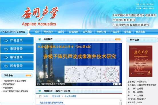 《应用声学》网络平台网站首页