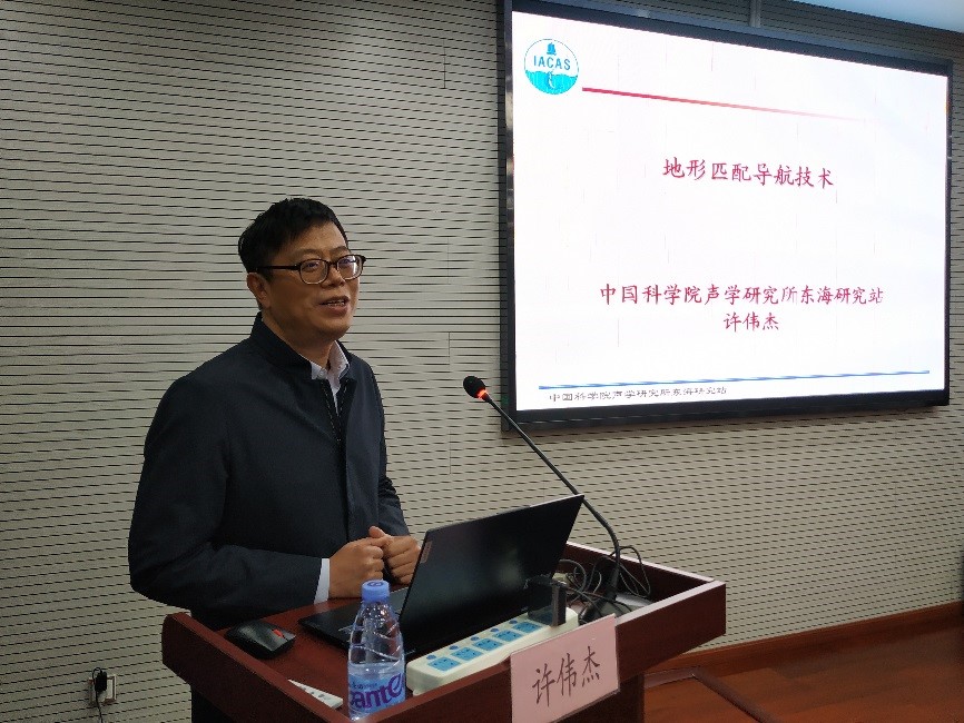 许伟杰作了题为“地形匹配导航技术”的学术报告,介绍了水下惯性导航、声学导航、重力导航和地形匹配导航等多种技术手段的优缺点。地形匹配导航结合地形海图和多波束声呐联合使用,能确认水下航行器位置,解决长时间导航误差累积难题。