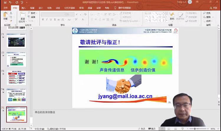杨军作题为《局域声场控制技术及其应用》的主题报告,介绍了声场控制技术原理及其在局部区域有源降噪、个人音响系统和局域声场重建方面的应用,并分享成果转化的点滴体会。此外,杨军还介绍了声学所的基本情况和各学科方向,借此机会向大家普及“声音传递信息、信息创造价值”的理念,声学虽作为一个小学科门类,却大有作为。此次报告引起了与会师生的浓厚兴趣,同时西安电子科技大学也表示,今后将与声学所保持密切联系,加强双方交流合作。