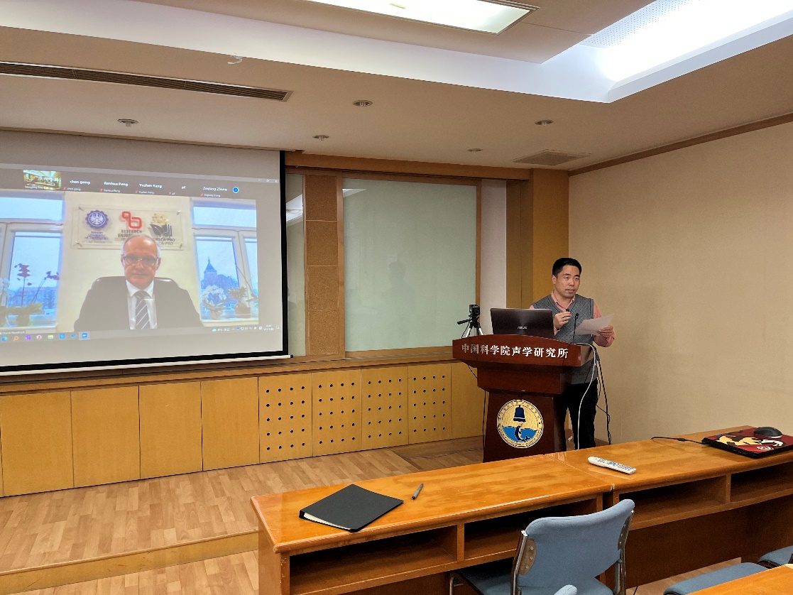 会议开始,孙红灵研究员对报告嘉宾进行介绍,Marek Pawelczyk 教授目前担任西里西亚工业大学科学与发展副校长、国际声与振动学会主席等职务,作为工业自动化、信号处理、振动声学和数学建模方面的专家,在振动噪声控制领域取得了大量出色的研究成果,并且多项研究已经在工业界得到应用推广。