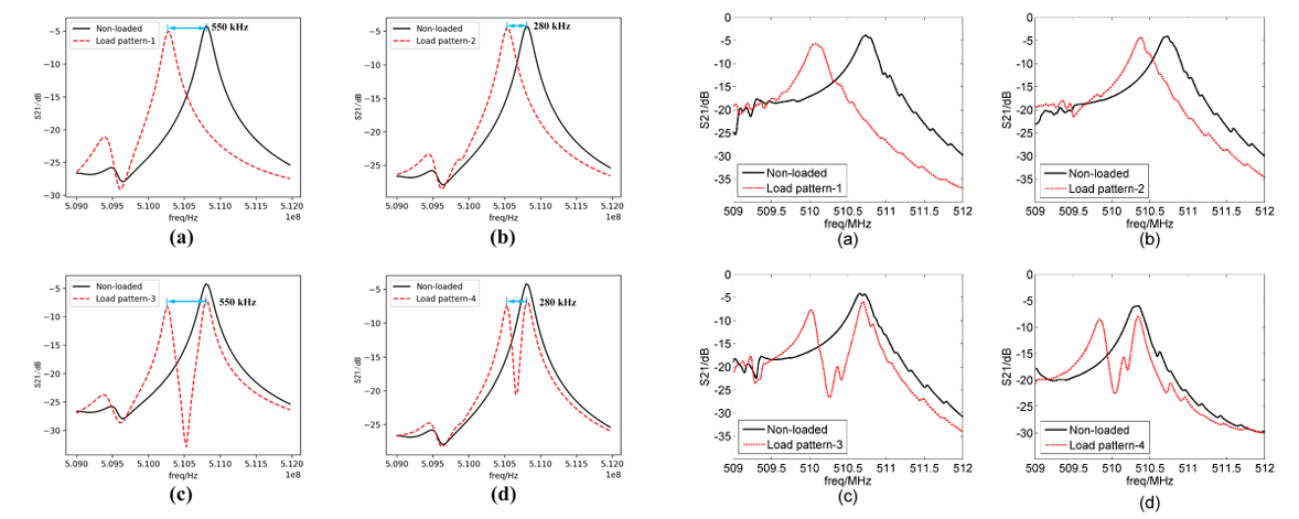 研究人员设计了四种不同分布形态的负载模式并分别进行了仿真模拟与实验。结果显示,负载的横向不均匀性对传感器频响主峰形状造成影响;负载的纵向不均匀性对传感器中心频率造成影响。各模式下实测的传感器频率响应与仿真频率响应一致,证实了该方法的准确性。