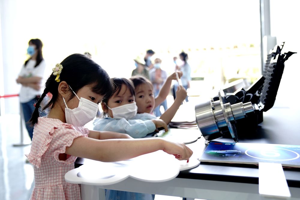 ↑522日,小朋友在声学创新成果展示现场写下自己的祝愿。