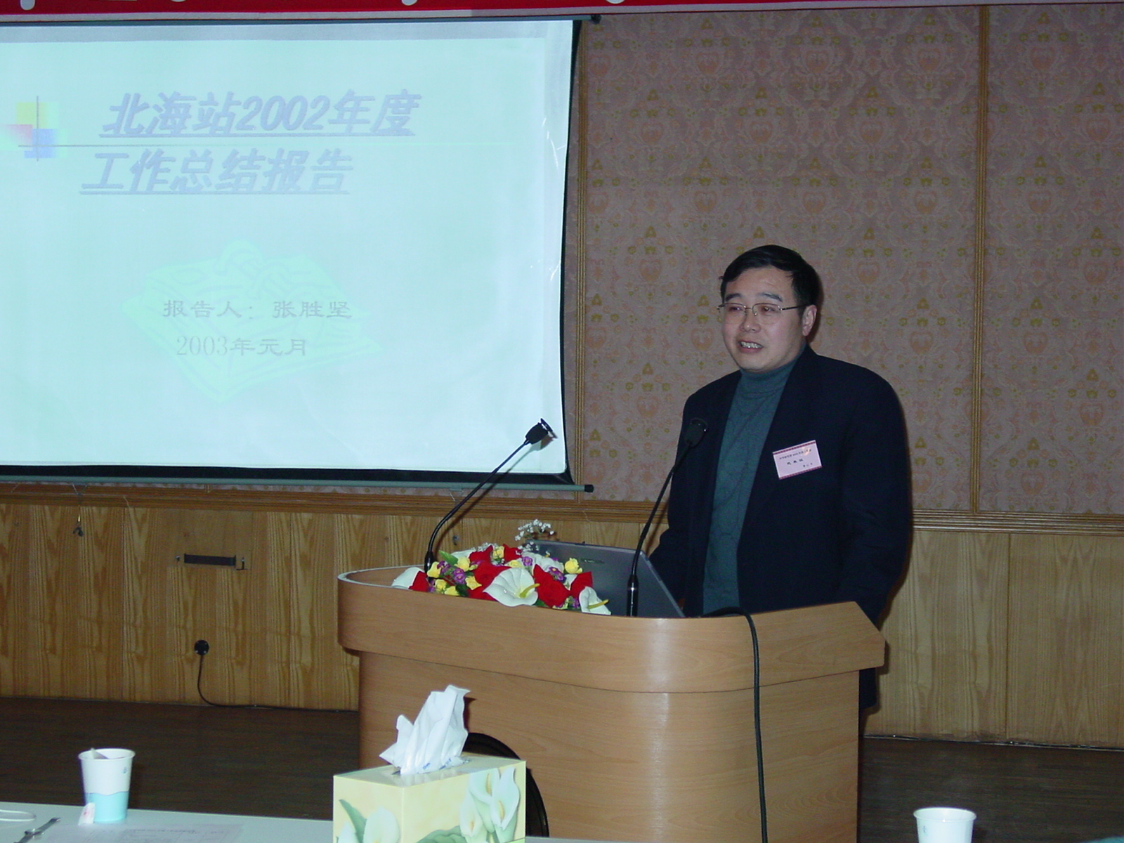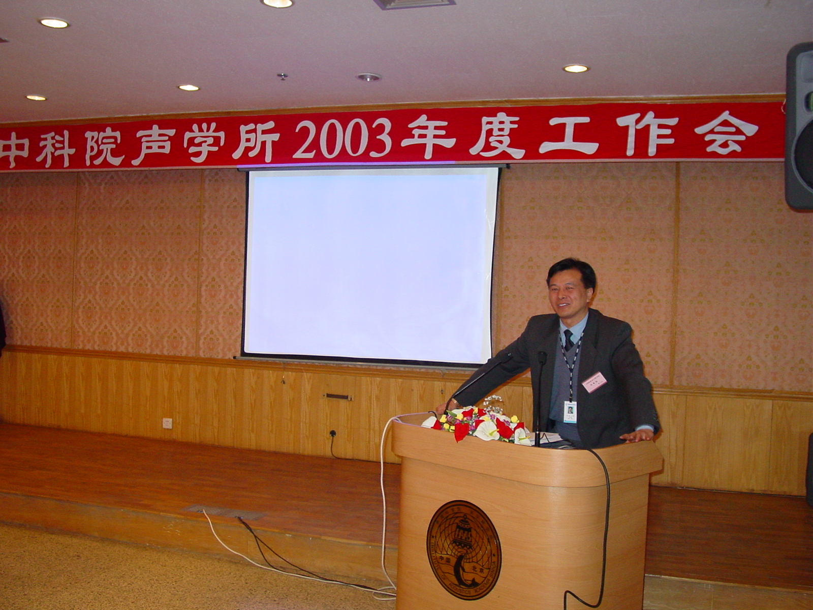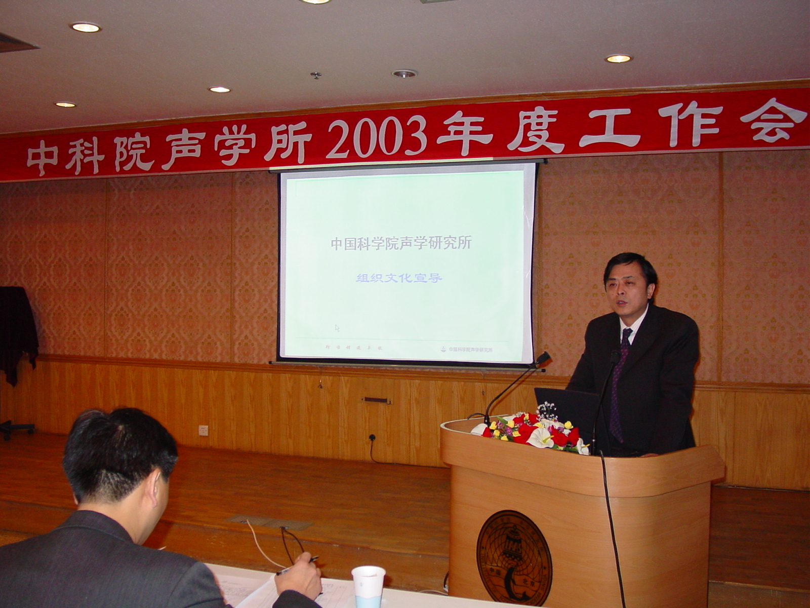 2003年1月16至18日,中科院声学研究所在DSP大楼多功能厅举行2003年度工作会。所行政、党委、纪委领导,机关各处、各研究部、各研究站领导和各党支部书记,近70人参加了会议。声学研究所副所长、党委副书记景荣才同志主持了会议。