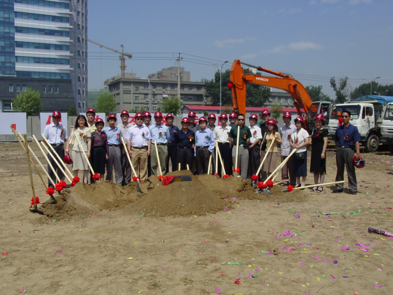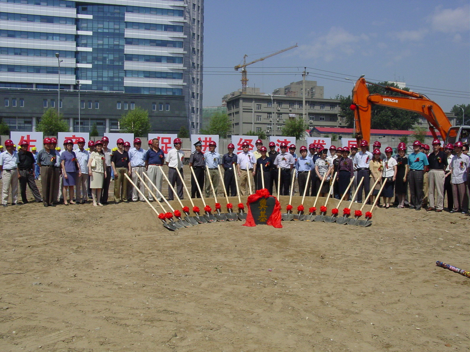 雨后的6月28日上午,空气格外清新,阳光明媚。我所在施工现场举行了简洁的开工仪式。参加活动的有所领导及各处室主要负责人、施工方、监理方、设计方、中关村派出所等约60多人。潘副所长代表所领导和全所职工向到会同志表示感谢,并预祝全所职工盼望已久的住宅楼建设,在各方的共同努力下取得圆满成功。各方代表,怀着激动的心情在奠基石旁挥镐填土,祝住宅楼建设一切顺利,早日竣工。〔行政资产处)