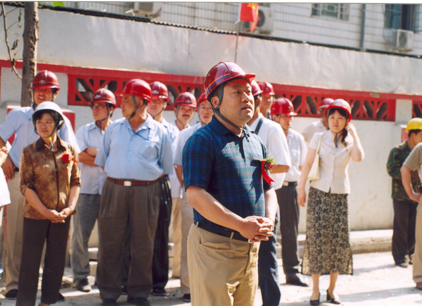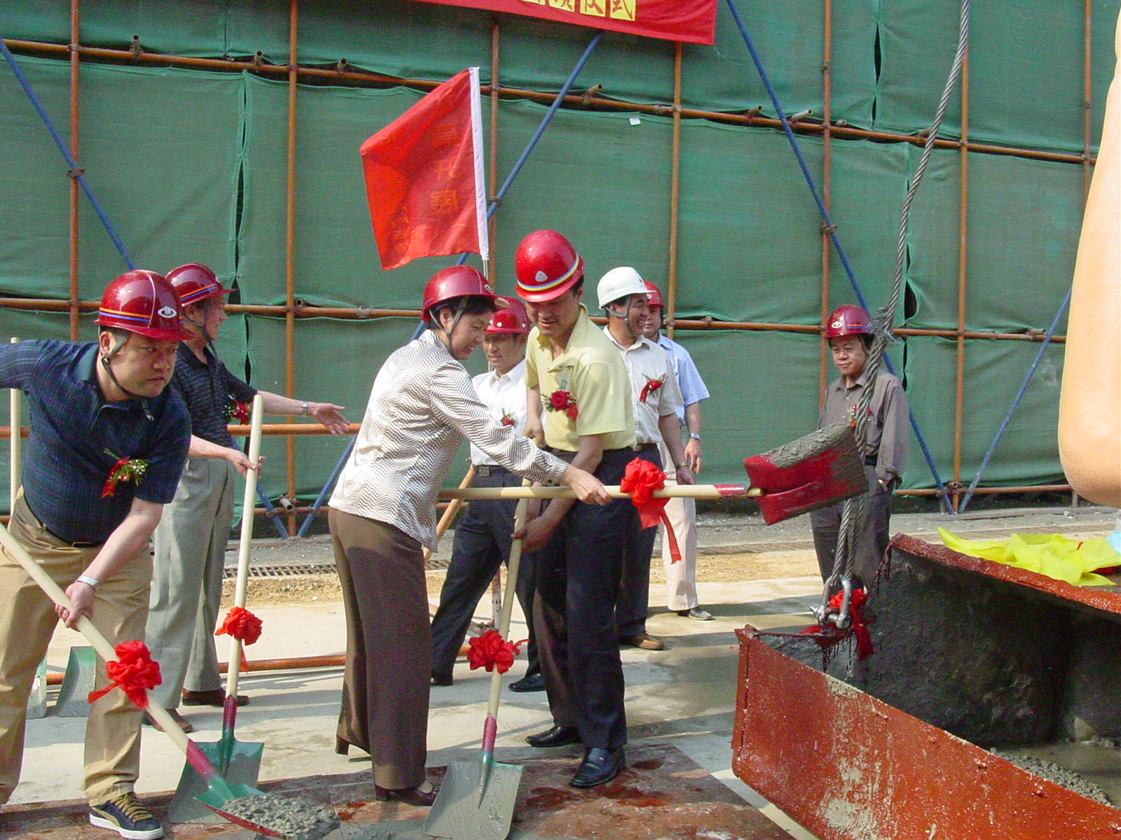 结构封顶是建房中的一个关键节点,为此,2004年6月7日下午4点左右在施工现场举行了简单而隆重的“声学所经济适用住房结构封顶仪式”。参加仪式的有:工程总包方、监理方、设计方领导及代表;我们所田静所长、张春华副所长、潘锋副所长、景荣才副所长、居琦副所长等全体所务会成员以及行政资产处、所办和职工代表等。将近50人到场祝贺,大家怀着喜悦的心情纷纷挥锹,将最后一斗混凝土沙浆装满后由塔吊送上屋顶封顶。