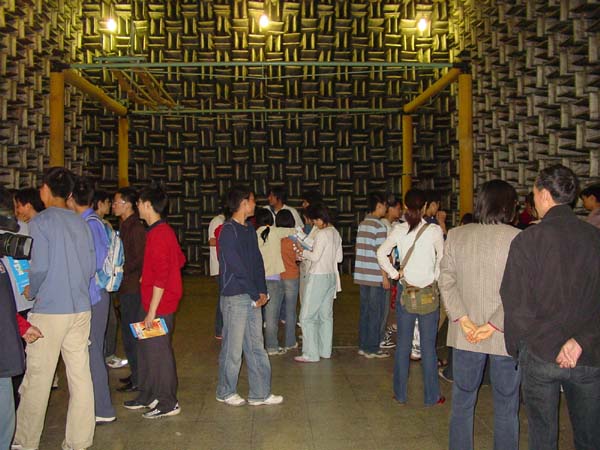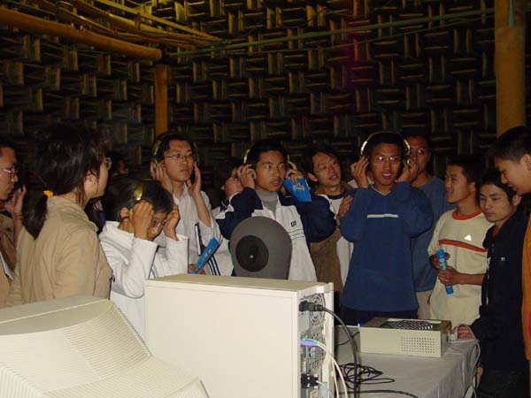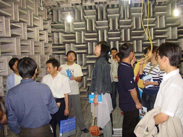 在DSP四层的展厅里,通过一幅幅精心制作的展板、一件件精密的科学仪器、一具具逼真的科研模具,集中展示了声学所的发展历程和取得的科研成果。同时,展厅内还循环播放声学所的简介片,使参观者对声学所有了一个更加形象、全面、直观的了解和认识。之后,在引导员的引领下,参观者又参观了基础声学实验室的混响实验室、半消声实验室和全消声实验室,在实验室中,参观者亲自体验了声音在不同实验室中的传播效果,引发了参观者的好奇心和对声学的无限兴趣,不少同学纷纷提问,都得到了讲解的耐心解答,使他们对声学的了解更进了一步。基础声学实验室同时展出的有源抗噪耳机等,也吸引了广大同学驻足观看,对耳机达到的抗噪效果惊叹不已。在声场声信息国家重点实验室,参观者通过聆听讲解员对展板的细致介绍和对试验设备现场观摩,对声波与物质的相互作用有了初步的了解,激发了同学们对声学研究的兴趣。超声检测实验室也制作了精美的展板,数名一线科研人员对广大同学的各种问题给予了耐心细致的解答。中科信息实验室展示的语音识别系统吸引了广大参观者的注意力,在工作人员的演示下广大同学惊叹于语音识别的准确性,不少同学还亲自体验了一下,当看到自己刚刚朗读的新闻即时的转化为文字在电脑上显示出来的时候,同学们都惊叹不已。为配合此次活动,更好的为前来参观的广大青少年学生服务,声学所还在DSP大厅设立了研究生招生咨询处,广大工作者对同学们提出的有关招生方面的各种问题给予了耐心解答。同学们纷纷表示,这次活动让他们加深了对声学研究所的认识,亲眼看到了我国声学领域的众多科研成果,亲自体验了声学研究带给人们的神奇效果,亲自感受了我国声学事业的发展壮大,更形象地感受到科学就在身边,更深刻的体会到科学在社会发展、进步中的巨大作用。此次活动得到了参观者的一直好评,活动结束后,许多同学纷纷留言,其中,北京理工大学的盛鹏在留言中写道:“希望以后能多增加开放的机会,让更多的人能够学习、了解咱们中国自己的科学发展,同时希望能够增多学校与研究所的交流活动。”西安电子科技大学的贾艳梅在留言中说:“参加此次活动受益匪浅,很有意义!”