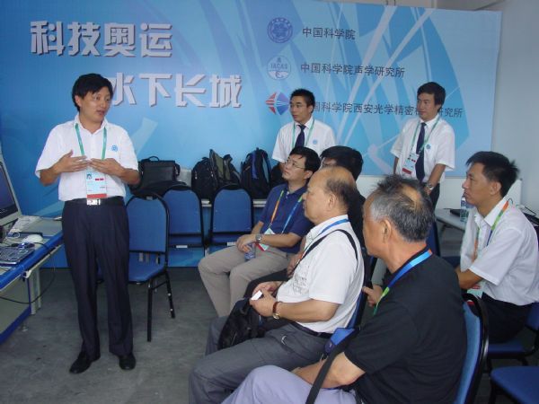 在整个任务的执行过程中,得到各方领导的亲切关怀,中科院高技术局信息处戴博伟处长、声学所张春华副所长、库卫群处长及院项目监理部的同志专程赴青岛检查工作,慰问现场的工作人员,勉励大家牢记科研工作者的责任和使命,毫不松懈,确保圆满完成奥帆测试赛水下安保任务,充分展示中科院的技术实力和科研人员的良好风貌。在比赛期间,奥运安保领导小组、公安部,青岛市市政府的领导也亲临水下安保现场进行了视察,并认真听取了许枫研究员对水下安保系统的介绍,详细了解了系统的性能指标,对水下安保工作给予了充分肯定和高度评价,鼓励大家再接再厉,确保明年奥运会水下安保任务圆满完成。