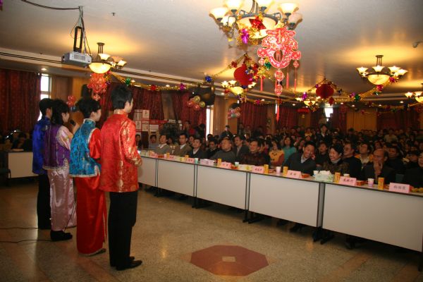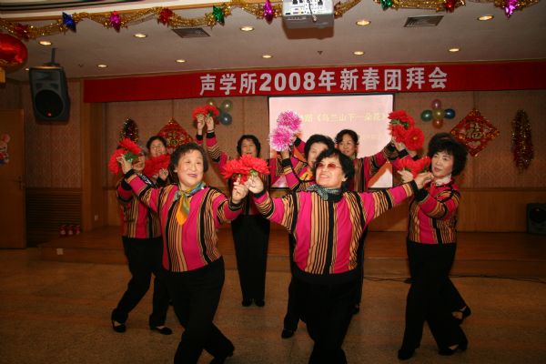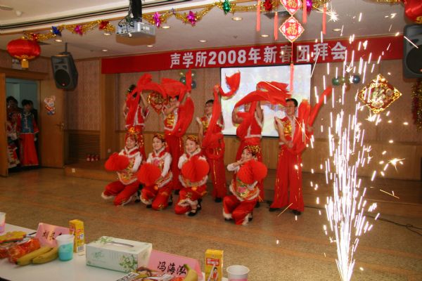 开心锣鼓闹喧天,爆竹声声又一年,辞旧岁,迎新春,声学所2008新春团拜会在一片欢呼与掌声中拉开了序幕。新春团拜会是声学所一年一度的最盛大的全所联欢活动,由所办公室、工会、团委、研究生会联合举办。大家自编自导自演的小节目,丰富多彩的小游戏,还有极具诱惑力的抽奖活动,吸引着声学所的每一个人。每年这个时候,所各级领导与全所职工和学生齐聚在DSP大楼多功能厅,欢歌笑语,一同度过这段温馨美好的时光。