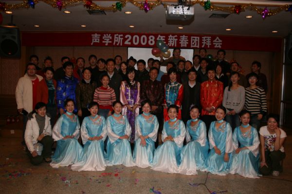 声学所2008新春团拜会在《欢乐今宵》的歌声和大家的掌声中顺利落下帷幕,大家都带着灿烂的笑容走出DSP大楼,走向新的一年——2008。