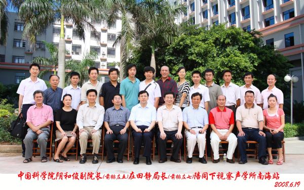 6月19日,阴和俊与院高技术局局长田静、声学所副所长张春华、声学所南海站站长戴琼兴的陪同下来到南海站调研。