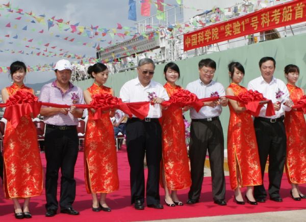 全国人大常委会副委员长、中国科学院党组书记、院长路甬祥,副院长江绵恒,海南省人大常委会副主任康耀红,中国船舶重工集团公司副总经理董强等领导同志为首航仪式剪彩。中科院秘书长李志刚主持仪式。中科院办公厅主任蒋协助,高技术局局长田静,资环局局长范蔚茗,计财局局长孔力、副局长潘锋,基建局局长孔繁文,以及渤船重工、702所、711所等其它相关单位领导出席首航仪式。田静局长代表中科院新型综合科考船项目经理部,江绵恒副院长代表中国科学院,董强副总经理代表中船重工集团公司,张仁和院士代表从事相关研究的科学家,先后在仪式上发表了热情洋溢的致辞,对“实验1”号首航表示热烈祝贺。