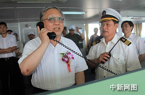 路甬祥院长在“实验1”号驾驶室内宣布启航