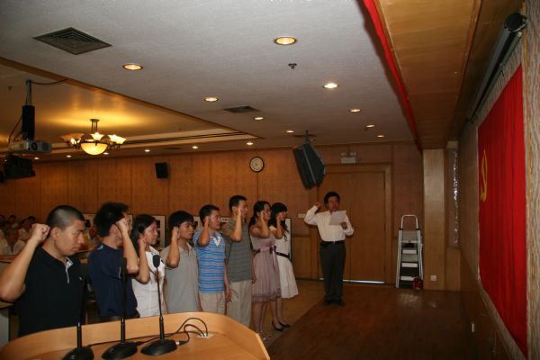 面对鲜红的党旗,党委委员李双田带领汪福全等8名新入党同志进行了庄严的宣誓。“为共产主义奋斗终身,随时为党和人民牺牲一切,永不叛党。”铿锵有力的誓言在会场上激荡。崔寒茵同志作为新党员代表发言。