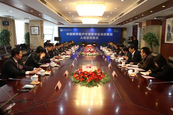 中科院声学所东海研究站入驻嘉定工业区项目筹备半年以来,双方积极沟通、已建立了深厚的合作基础。中科院声学所东海研究站站长胡长青和嘉定工业区党工委书记郁建华代表院地双方签署了合作协议。