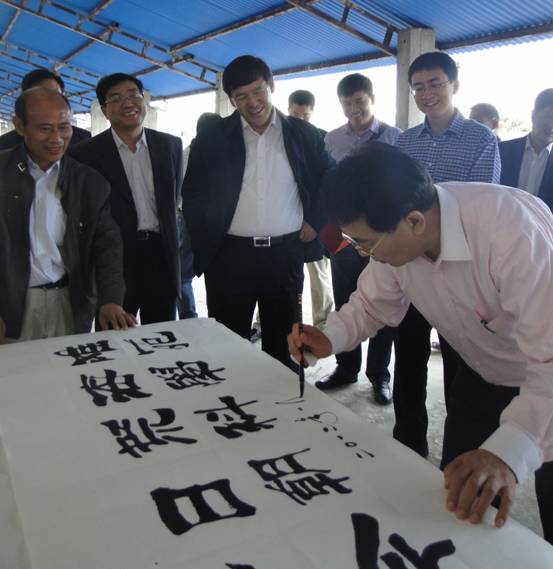 最后,白院长为声学所陵水实验基地挥笔题词:昔日荒海滩,今朝科学苑。