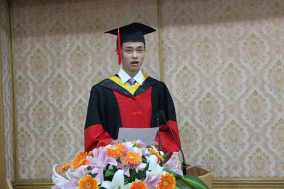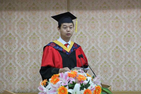 蔡宇同学代表全体毕业生感谢声学所的悉心培养,感谢领导和导师们的辛勤培育,他表示全体毕业生将不负师长们的教诲和嘱托,做德才兼备勇挑重担的人,成为祖国建设的栋梁。