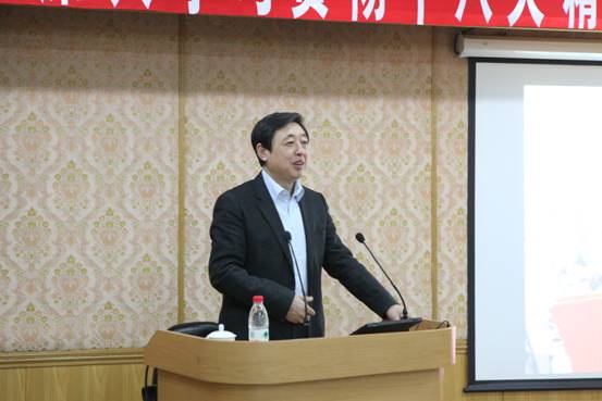 接着,何岩为大家深入解读了胡锦涛同志题为《坚定不移沿着中国特色社会主义道路前进为全面建成小康社会而奋斗》的报告。他指出,十八大报告高屋建瓴,思想深刻,内涵丰富,求真务实,认真总结了过去五年的工作和党的十六大以来的奋斗历程,科学地回答了党在改革发展关键阶段举什么旗、走什么路、以什么样的精神状态、朝着什么发展目标继续前进等重大问题,是我们党团结带领全国各族人民夺取中国特色社会主义新胜利的政治宣言和行动纲领,是马克思主义的纲领性文献,为党和国家事业进一步发展指明了方向。