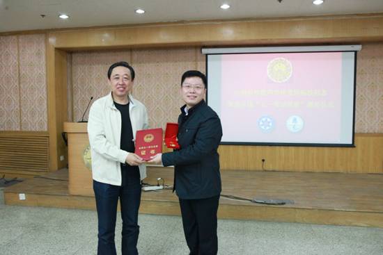 颁奖仪式上,何岩主席向杨波同志颁发全国“五一劳动奖章”和证书。