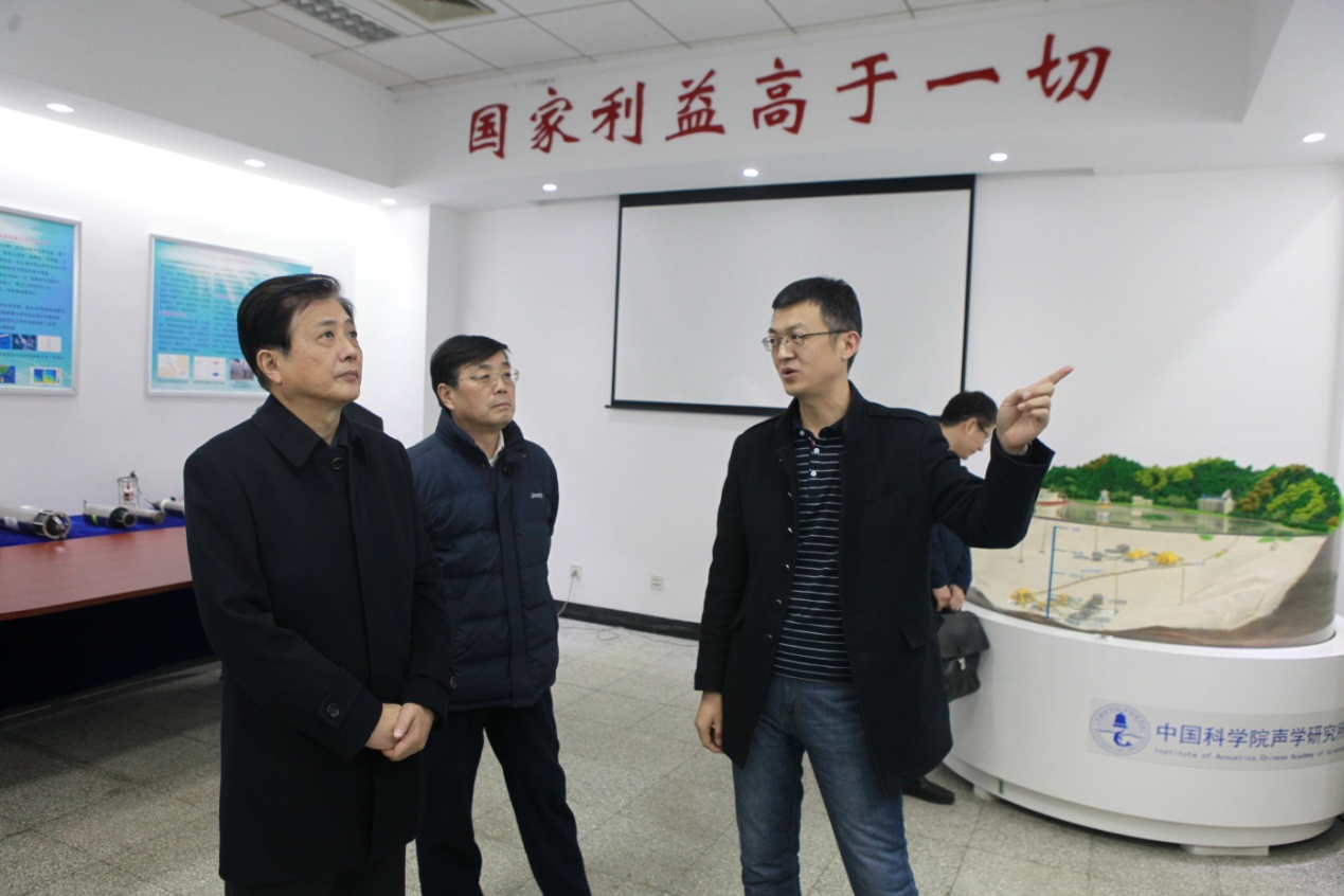 1122日下午,中国科学院党组副书记、副院长刘伟平调研中科院声学研究所,先后实地调研声学所中科院水声环境特性重点实验室、声场声信息国家重点实验室、中科院噪声与振动重点实验室、国家网络新媒体工程技术研究中心、中科院语言声学与内容理解重点实验室等研究单元的主要科研工作进展,听取王小民所长做的声学所总体情况、“十二五”主要科技创新成果、创新研究院建设情况、“十三五”规划推进情况和党的建设等工作报告,并与研究所领导班子成员、科研和管理骨干、党支部书记等围绕学习宣传贯彻党的十九大精神,加快实现“三个面向”、“四个率先”目标任务进行座谈交流,张春华书记主持座谈会。