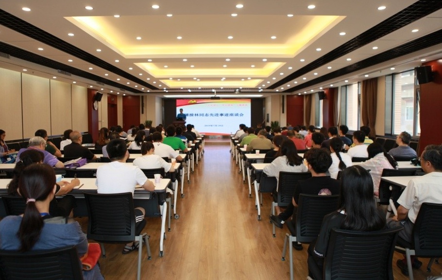 2019年7月18日,声学所党委召开“不忘初心、牢记使命”主题教育潘接林同志先进事迹座谈会。所领导,党委委员,纪委委员,副处以上中层干部,党支部书记、副书记、支委,工会/职代会、团委、妇委会负责人,中科院语言声学与内容理解重点实验室职工和学生代表共计100余人参加。会议由党委书记张春华主持。