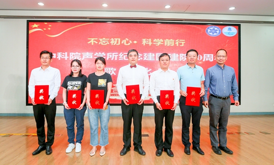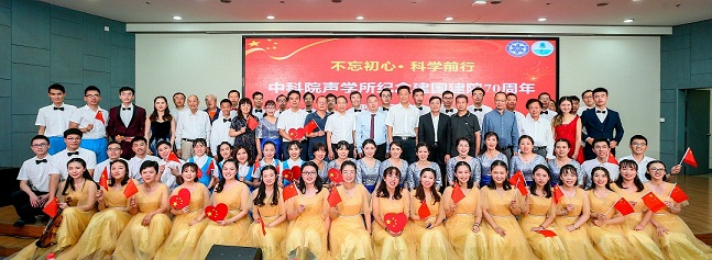 为隆重纪念新中国成立70周年、中国科学院成立70周年,2019年9月26日下午,声学所举行“不忘初心·科学前行”歌咏比赛。所长王小民,党委书记张春华,副所长李明庚、马晓川、李风华以及全所11个参赛队、450余名职工和学生以及三站代表观看并参加了此次比赛,用嘹亮、动听的歌声歌颂祖国歌颂党、歌颂科技创新成就。