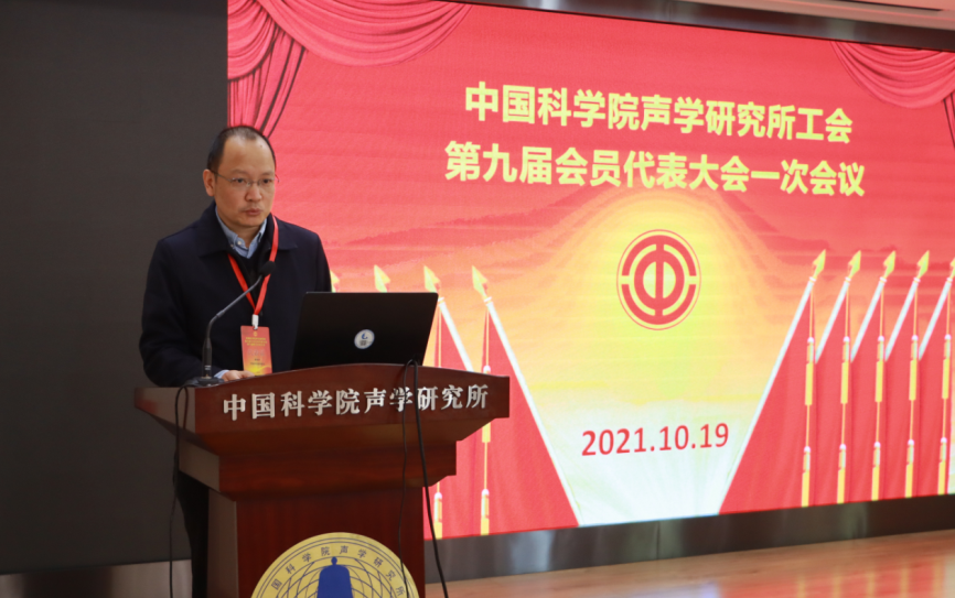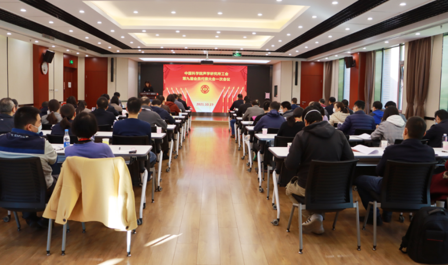2021年10月19日,声学所第九届工会代表大会第一次会议在DSP多功能厅召开。所长李风华,党委书记、副所长倪宏,副所长李明庚、杨军,第八届工会主席林伟军及与会代表40余人参加。会议由第八届工会常务副主席周秀霞主持。