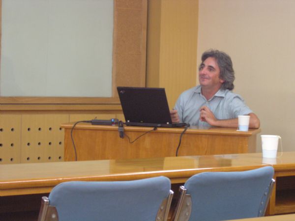 2007年8月1日下午,应王秀明研究员的邀请,来自意大利OGS(The National Institute of Oceangraphy and Experimental Geophysics )研究中心的专家Dr. Umberta Tinivella和Dr. Flavio Accaino做了精彩的学术报告。其中Dr. Umberta Tinivella自1996年加入OGS以来,长期从事天然气水合物的物理性质与地震波、测井和实验测量资料之间关系的研究工作,并提出了利用测量数据识别地层中存在的“过压区”(overpressure zone)的方法,积累了大量相关的工作经验。目前为OGS几个与天然气水合物有关项目的负责人。Dr. Flavio Accaino目前主要从事地面和海底地震波资料的采集、处理和反演地震剖面等的工作。