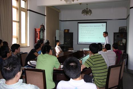 这次报告由周城光副研究员主持,噪声振动实验室的众多师生参与。师生们围绕加筋板的模态、机械故障诊断等问题跟Lin博士进行了热烈的讨论,现场氛围非常活跃。