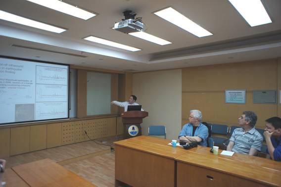 杨亦春研究员做了“Monitoring & Study of Infrasound Waves Associated with Natural Events”的报告,对与自然事件相关的次声波,特别是雅安地震次声波的观测研究进行了详细阐述。介绍了雅安地震前后的次声波分析结果,包括来自地震局地壳所的杨选辉研究员,地震局地球物理所陈学忠与苏伟研究员,北京大学郝永强教授,防化研究院程先友研究员,中国地质大学李志华教授等各位专家对此有浓厚兴趣并热烈讨论,一致认为次声波是自然事件特别是地震观测研究的有效手段,并对可能存在的地震前兆次声波表示支持与肯定。朱星作了 “The Infrasound Signatures of the 2013 April 20 Ya’an Earthquake in China”的报告。