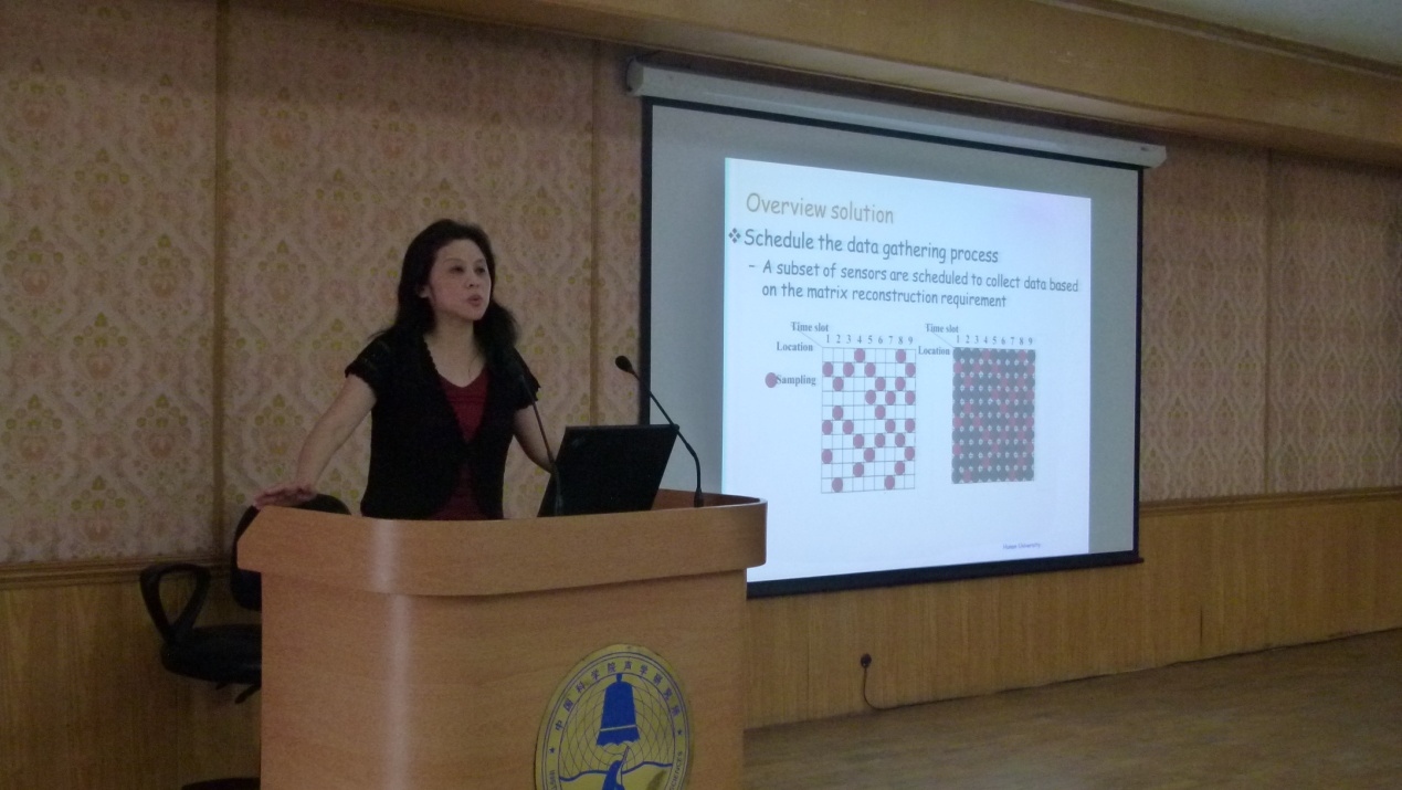 2014613日上午,应国家网络新媒体工程技术研究中心邀请,美国纽约州立大学石溪分校电子与计算机工程系无线网络和系统实验室主任王欣副教授访问声学所,并在DSP多功能厅做了题为“Sparse On-Line Data Collections in Wireless Sensor Networks based on Matrix Completion”的学术报告。报告会由中心副主任邓浩江研究员主持,副所长倪宏研究员、中心主任王劲林研究员以及声学所相关的研究人员、研究生听取了报告。