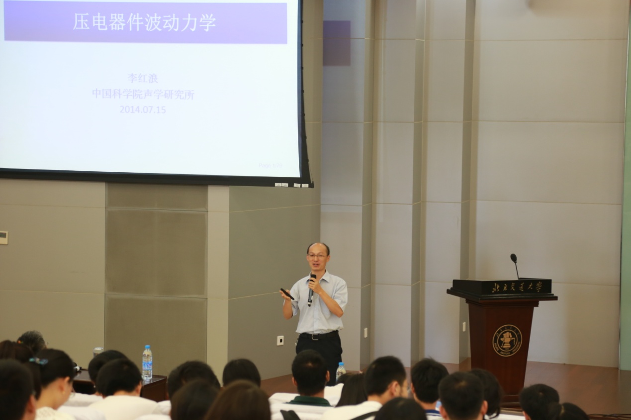 2014859日,由自然科学基金委员会资助的2014弹性波动力学高级讲习班在北京交通大学成功举办,讲座教授包括中科院声学所所长王小民研究员、美国西北大学曲建民教授、德国锡根大学张传增教授、中科院声学所李红浪研究员、体育官网新闻程建春教授、武汉大学刘正猷教授、西安交通大学卢天健教授、北京理工大学胡更开教授、浙江大学陈伟球教授、哈尔滨工业大学胡恒山等10位国内外相关领域的著名专家,讲授内容涵盖涉声学微纳米电子器件、新型声学功能材料和结构、材料无损检测和结构健康监测、能源资源勘探开发等方面的弹性波动力学理论、最新成果及应用等。会议参加人员包括国内从事相关工作的青年学者和研究生250多人。