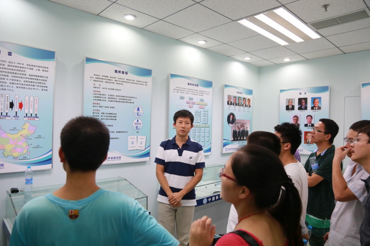 87日下午科技处组织近200名学员对声学所进行了参观学习。DSP多功能厅,科技处高军保处长对参观学员做了欢迎致辞,并介绍了声学所的历史与发展,受到学员们的热烈欢迎,参会学员共同观看了声学所传统教育宣传片。随后参观者分别参观了声学所展厅、超声实验室展厅、通信声学实验室展厅、水池以及蛟龙号展厅。在各个展室,讲解员对展室内的研究成果进行了耐心细致地讲解,使学员们对各个学科组的研究方向有了更直观的认识。学员们表现出浓厚的兴趣,深深感受到了声学所的先进技术并为之惊叹。