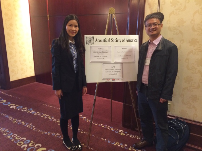168届美国声学学会会议(168th Meeting of the Acoustical Society of America)于20141027日至31日在美国印第安纳州的州首府印第安纳波利斯举行。声学所超声物理与探测实验室何晓副研究员和周吟秋博士生应邀参加了此次会议并做了会议报告。
