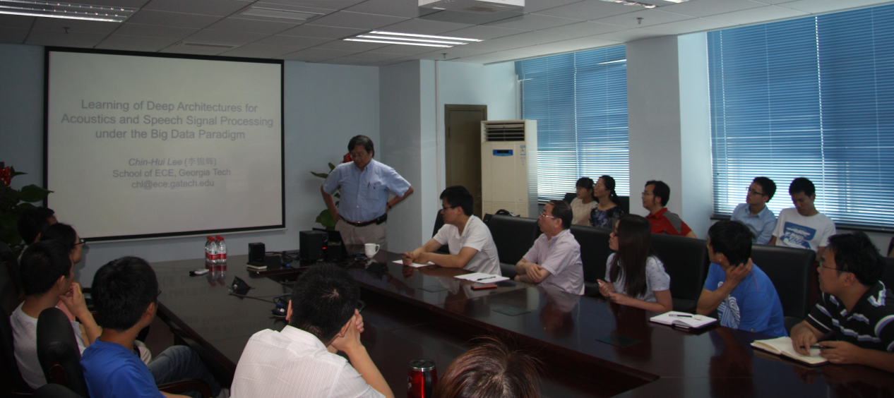 2015616日,美国佐治亚理工学院终身教授李锦辉教授来到声学所语言声学与内容理解重点实验室进行学术交流,并做了题为“Learning of Deep Architecture for Acoustic and Speech Signal Processing under the Big Data Paradigm”的研究报告,交流活动由颜永红研究员主持,付强研究员、周若华研究员等三十多名研究人员和在读研究生参加了此次报告会,报告后李教授与现场人员进行了深入细致的讨论。