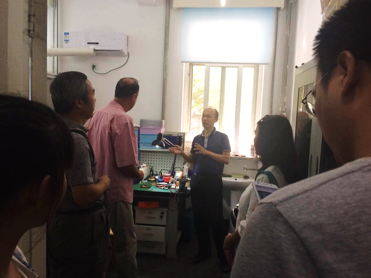 首先,艾德里安教授参观了超声技术中心微声学与微器件方向组,李红浪研究员为其介绍并演示了基于声表面波的无线无源温度、压力等传感器,艾德里安教授对此产生浓厚兴趣,并进行了讨论。