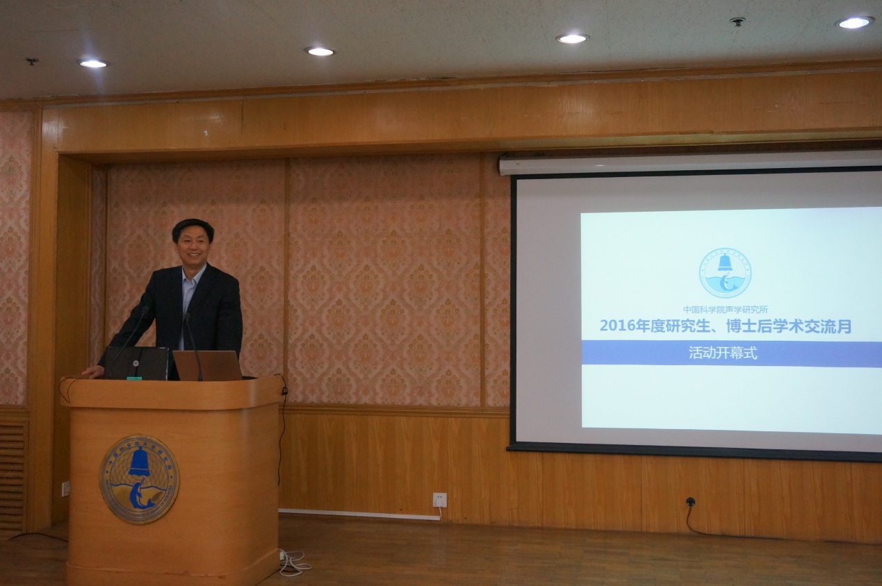 2016年4月8号,声学所第六届学术交流月开幕仪式在DSP楼多功能厅顺利举行。本次活动旨在促进学术上的相互交流,营造良好的学术氛围。张春华书记、李启虎院士、科技委员会郭良浩主任、王文研究员、导师代表及硕士二年级、博士二年级近130余名师生出席了开幕式。开幕式由研究生部李辉同志主持,党委书记张春华致开幕辞,李启虎院士和王文研究员做了特邀报告。