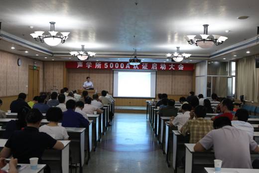 2012年6月21日下午,声学所召开了5000A认证启动大会。会议由倪宏副所长主持,王小民所长及张春华书记、相关实验室及职能部门领导、EPG成员、项目负责人、项目软件负责人、软件人员、项目管理人员、质量人员共60余人参加了此次大会。