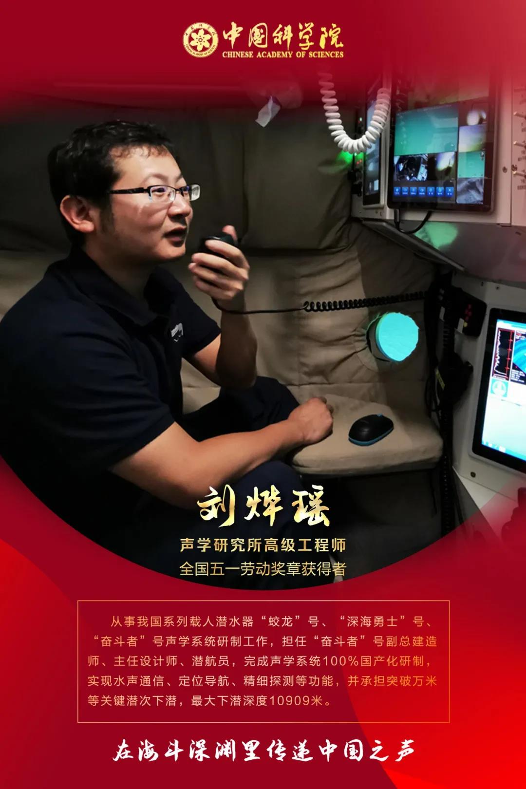 刘烨瑶同志从事我国系列载人潜水器“蛟龙”号、“深海勇士”号、“奋斗者”号声学系统研制工作。声学系统是“奋斗者”号核心系统,实现100%国产化,完成通信、定位、导航、姿态测量、测流测速、障碍物探测、小目标搜寻等功能,性能指标国际领先。刘烨瑶担任“奋斗者”号副总建造师、主任设计师、潜航员,冒着生命危险执行“奋斗者”号全部13次下潜中的5次,包括海试风险最大、首次突破万米的全部关键潜次,最大下潜深度10909米。