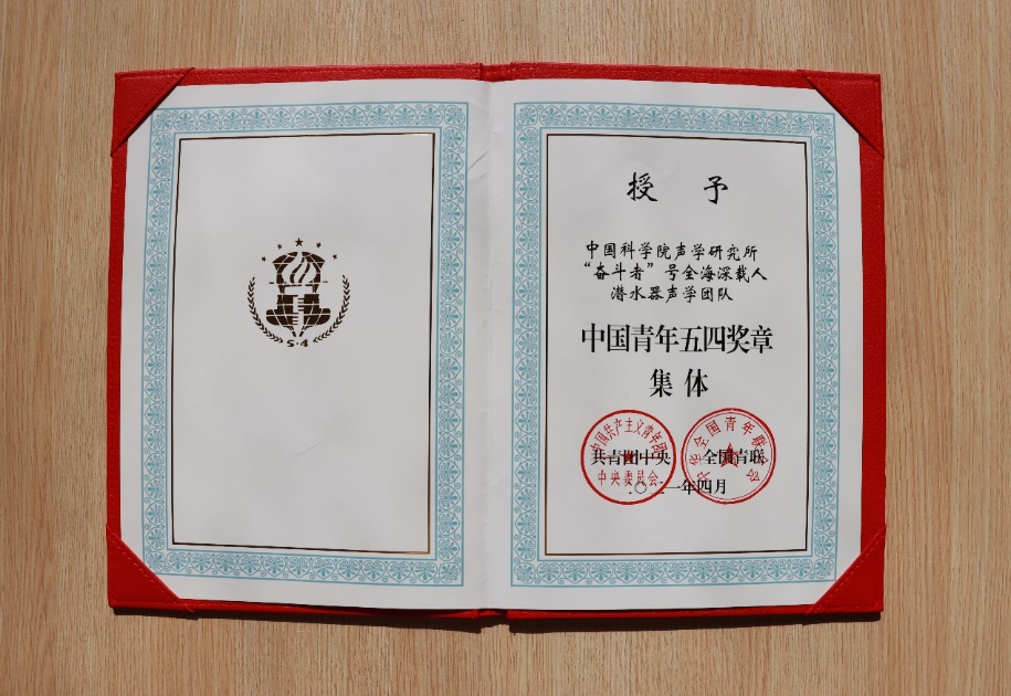 近期,声学所“奋斗者”号全海深载人潜水器声学团队被共青团中央、全国青联授予“中国青年五四奖章集体”,刘烨瑶同志被授予“中国青年五四奖章”。