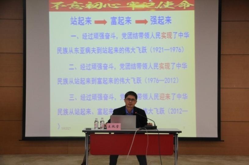 202158日,北海研究站组织召开党史学习教育专题报告会,青岛市委党校党史党建部副主任王政堂教授应邀作了专题辅导报告,站领导、在职党员及部分职工参加培训。站党委书记安俊英主持报告会。