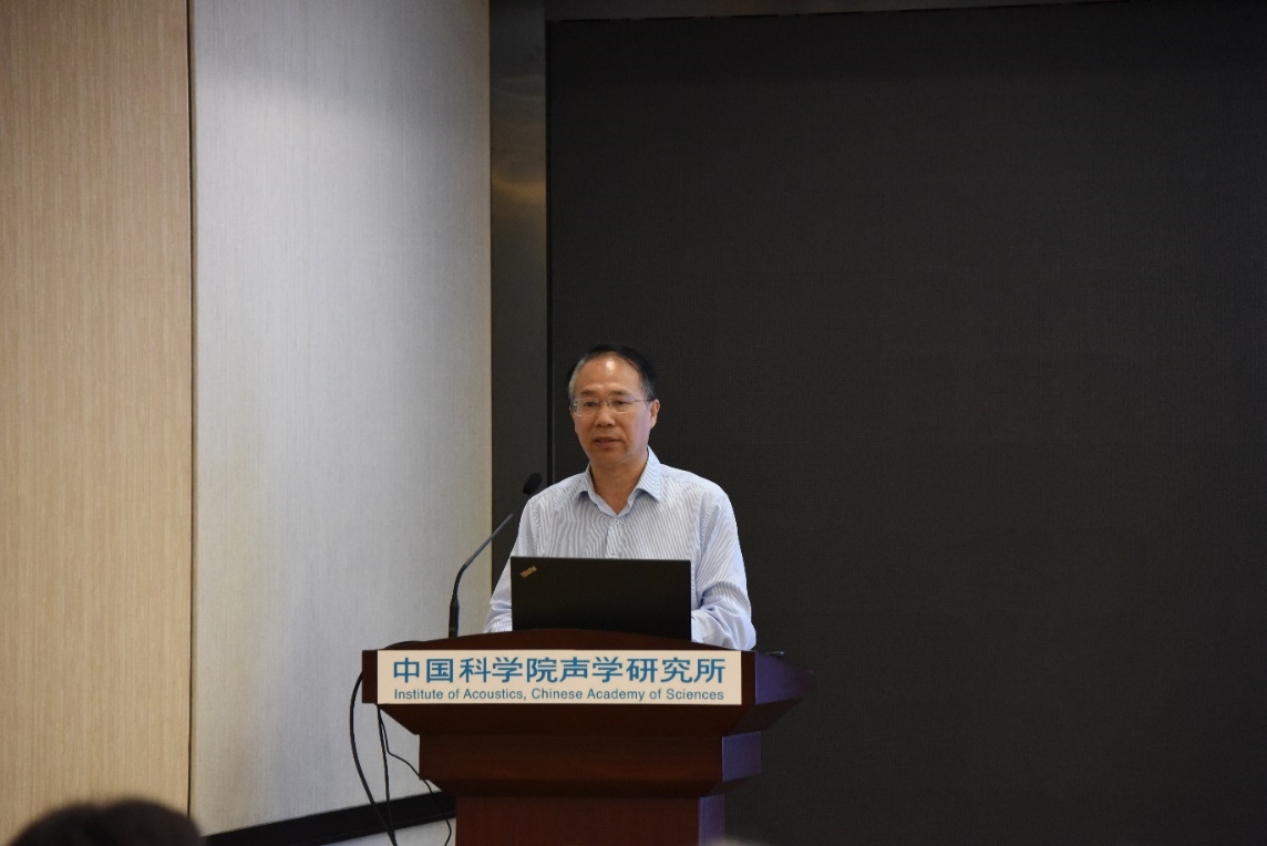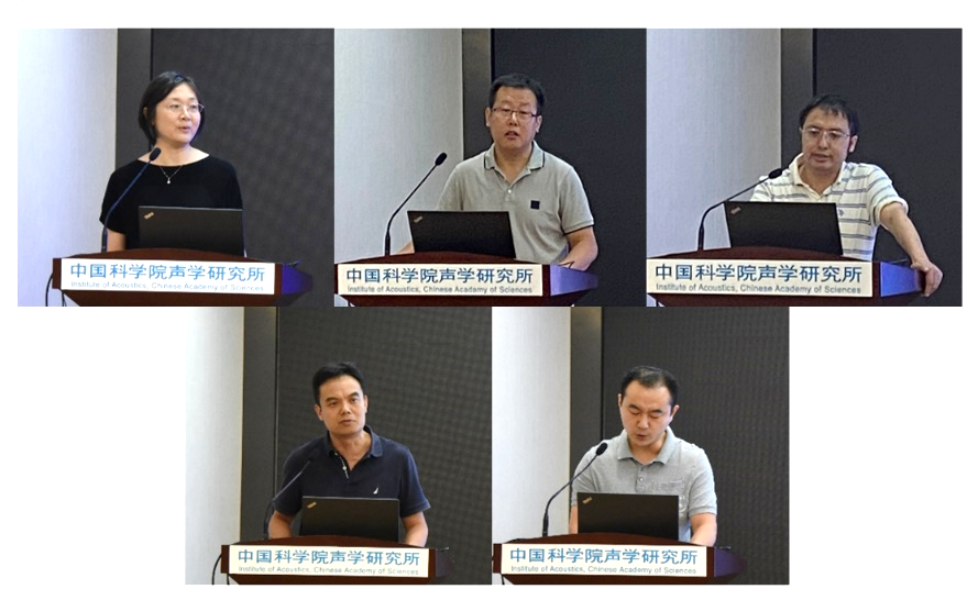 随后,各方向组依次汇报工作。检测声学与无损检测的毛捷研究员、微声学与微器件的李俊红研究员、固体声学与深部钻测的陈浩研究员、计算声学与声能应用的林伟军研究员4个方向组的组长,以及医用声学的代表王晓东副研究员分别做了方向组工作报告,并对未来的工作计划进行了介绍。