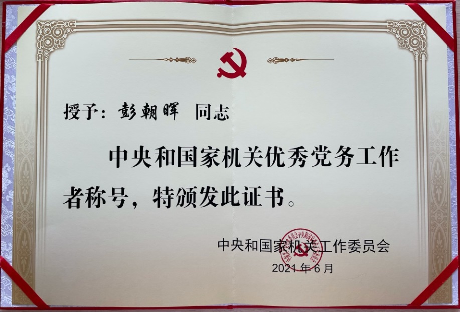 声学所彭朝晖同志荣获“中央和国家机关优秀党务工作者”称号