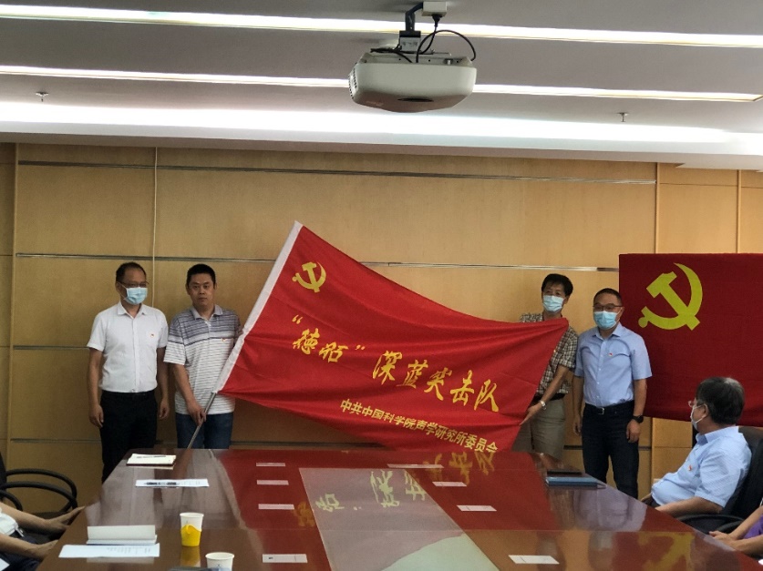 倪宏代表所党委进行现场动员。为更好传承、弘扬、践行科学家精神,让党旗在科研一线高高飘扬,所党委成立了以我所首任所长汪德昭院士命名的系列突击队。“德昭”系列突击队以流动形式授予不同科研团队,意义更大、广泛性更强。“德昭”深蓝突击队主要授予长期湖海试外场试验的科研攻关团队,今天是第一次授旗,这面旗帜是一份荣誉,更是一份责任。希望攻关团队能够更好发挥基层党组织的战斗堡垒作用和党员的先锋模范作用,攻坚克难、艰苦奋斗,传承好科学家精神,践行声学所的优良传统,在“德昭”精神的激励下,以出色的成绩完成外场试验,为红旗增辉。倪宏还谈到,结合“我为群众办实事”实践活动,针对我所科研人员外场试验多、出差时间长的科研特点,所党委设置了固定热线电话,以便及时了解科研人员的实际需求,解决科研人员的后顾之忧,遇到困难可以拨打热线电话,所党委将会全力为大家解决。最后,倪宏叮嘱大家要认真做好疫情防控工作,遵守当地疫情防控要求,保护好自己和团队成员的安全,并代表所党委和领导班子预祝攻关团队外场试验圆满成功,期待团队早日凯旋。