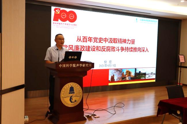 所长李风华作廉洁从业专题报告暨廉政党课。他结合巡视整改,要求各级负责人正确认识巡视发现问题,严格落实巡视整改任务,明确提出四点要求。一要强化责任意识,切实担负起党风廉政建设责任,落实好“一岗双责”的具体要求,筑牢拒腐防变的思想堤坝,做到警钟长鸣,把党风廉政建设与科研业务融合推进,提升所属人员廉洁意识。二要建立健全制度体系,制定好、宣传好、执行好制度,规范管理,防范廉政风险。三要加强监督管理,持续提升全所人员守规矩讲纪律的意识,不断堵塞监督管理漏洞,坚决遏制腐败问题发生。四要强化作风建设,切实克服形式主义、官僚主义,深入推进声学所党风廉政建设和反腐败工作,让中央八项规定精神在声学所落地生根。