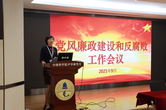 9月13日,声学所召开了2021年度党风廉政建设和反腐败工作会议,所领导班子全体成员、党委委员、纪委委员,实验室主任、副主任,职能部门、资产管理、工青妇组织负责人,党支部(总支)书记、纪检委员近70人在所本部参加了会议。所属三个研究站近50人以视频形式参加会议。会议由所党委副书记、纪委书记李浩然主持。