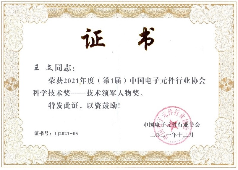 会议举行了“2021年度中国电子元件行业协会科学技术奖”颁奖仪式,根据《中国电子元件行业协会科学技术奖奖励条例》,2021年度中国电子元件行业协会科学技术奖技术发明奖授奖项目1项,其中:一等奖空缺,二等奖1项;科技进步奖授奖项目20项,其中:一等奖7项,二等奖13项;技术领军人物奖授奖人7名;青年创新先锋奖授奖人4名。