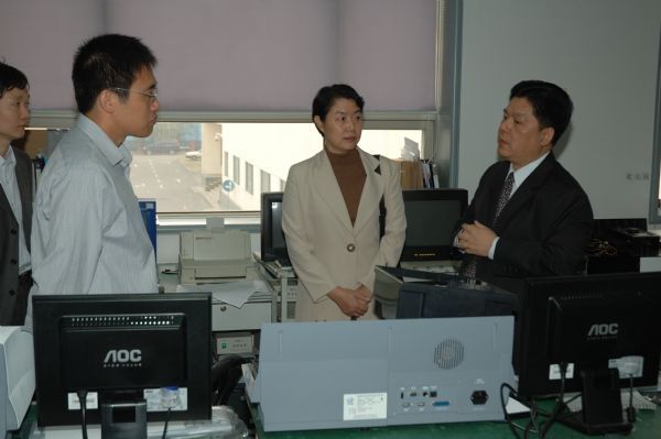 源德公司董事兼总经理吴晓东向居琦副所长介绍增敏化学发光免疫分析系统
