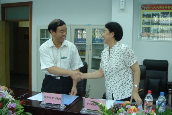 2007年7月19日,声学所与山东省泰安市中心医院共建医用声学实验室临床科研基地合作协议签字仪式在泰安市中心医院举行,声学所副所长居琦和泰安市中心医院院长刘义成出席了签字仪式并分别代表共建双方签署了合作协议。