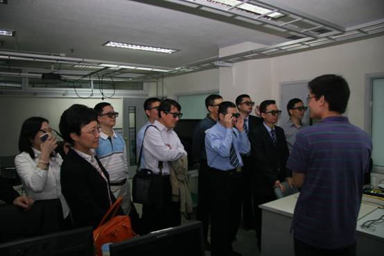 曾路院长一行首先参观了声学所展室,听取了库卫群处长关于声学所总体情况和科研方向的介绍;在国家网络新媒体工程技术研究中心观看了互动新媒体交互电视业务系统、新一代内容发布管理与业务运营平台演示,在半消声室观看了高指向性声频扬声器、高声强定向声发射系统和声相仪演示。来宾们对声学所研发的各项成果表现出浓厚的兴趣,详细询问了产品功能指标、技术成熟度、应用前景及产业化进展等问题,科研人员一一进行了解答。